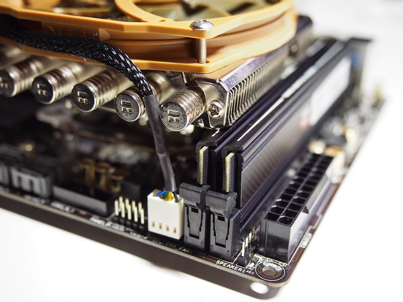 基本上風扇以及前面版的接線都沒啥大問題,但是很明顯記憶體和風扇本體緊密接觸,如果使用記憶體散熱片比較高的記憶體,勢必得在記憶體或者風扇之間做取捨,或者改用單條容量大些的記憶體,另外就是 USB 3.0 的接頭會被擋到,因為散熱器本體比較低,會干擾到 USB 3.0 19Pins 接頭的安裝 (因為接頭較長,硬裝的話得坳線)。