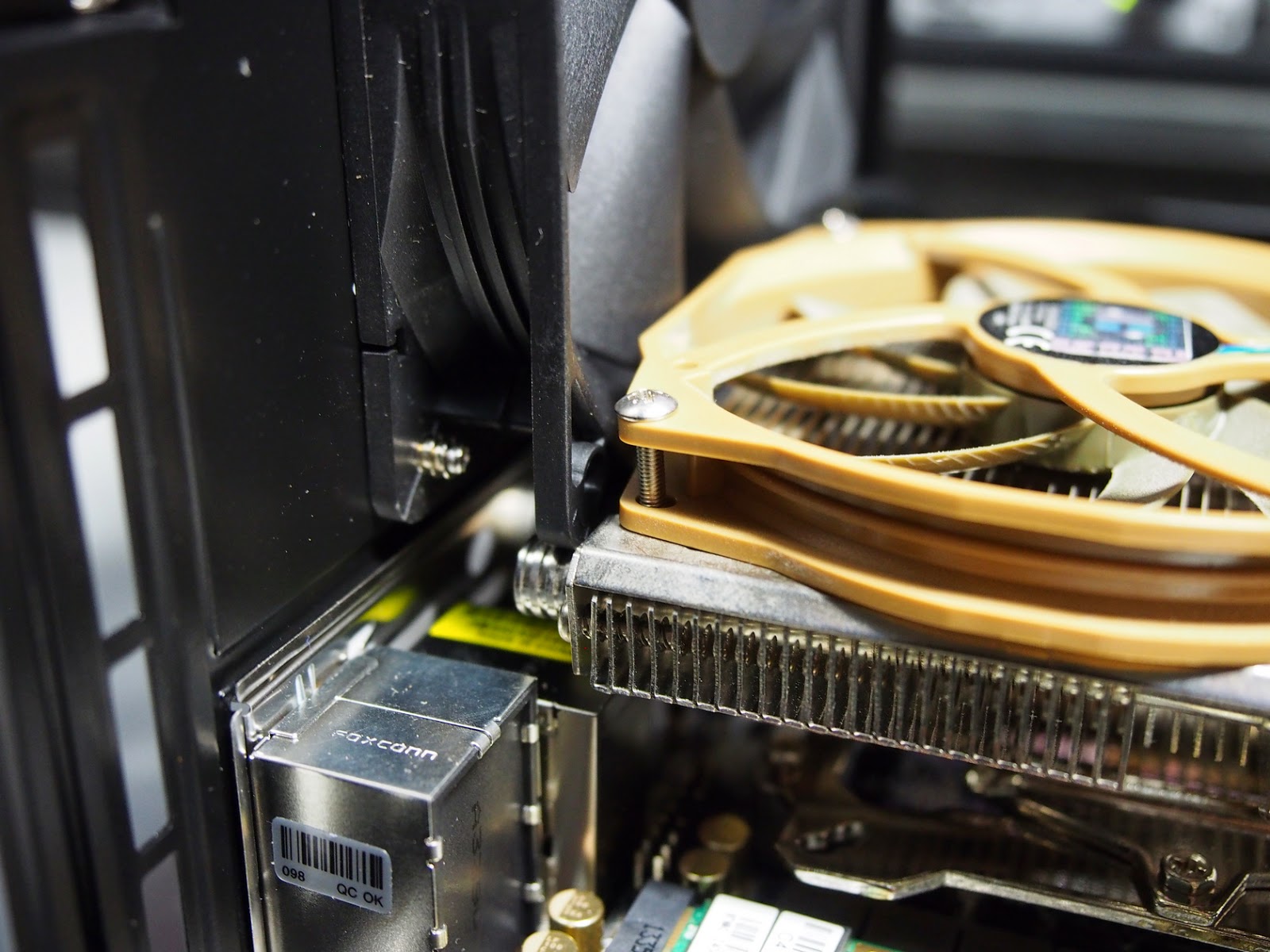 由於主機板配置轉了 90 度,真魂也跟著轉了個直角,幾乎貼近後抽風扇