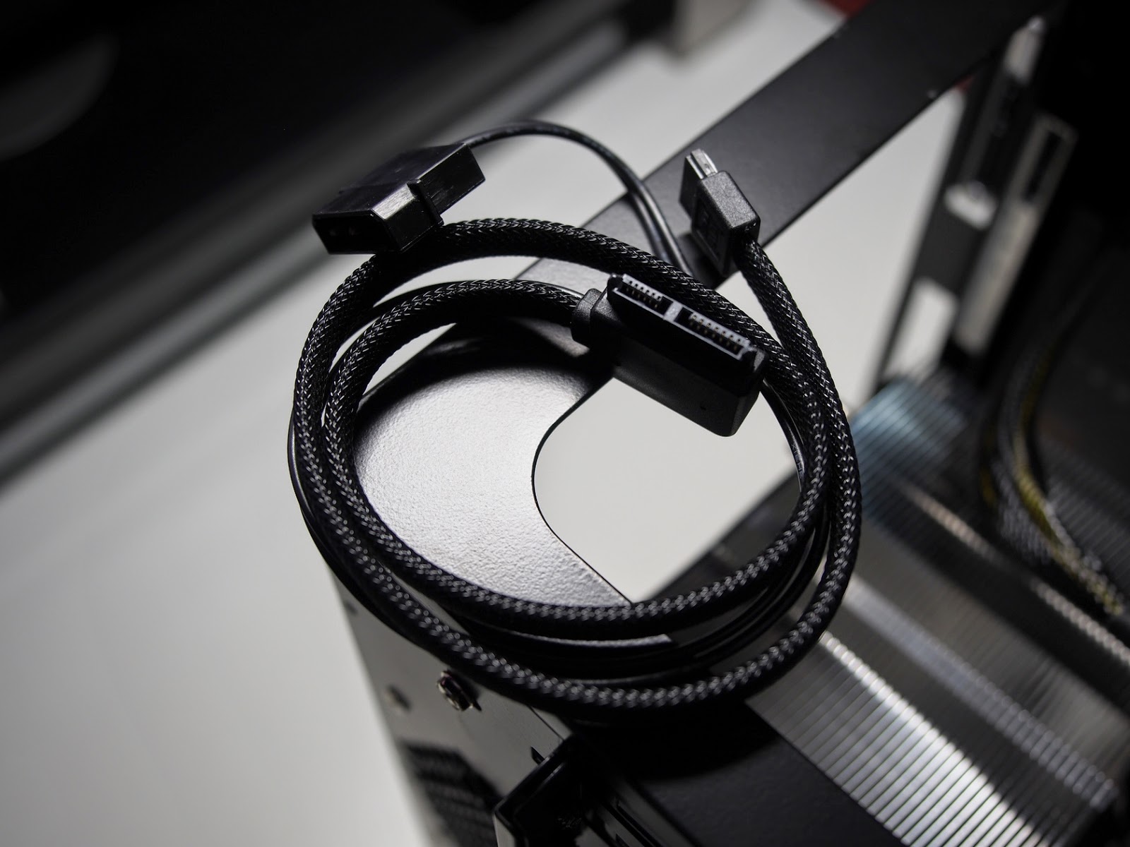 不浪費空間的設計,只是個人非常沒有愛,一點也不邏輯,SATA線材還好,電源接頭通常間隔沒這樣長,等於要使用兩條電源線,電源/SATA 並排不是比較順嘛 ?!